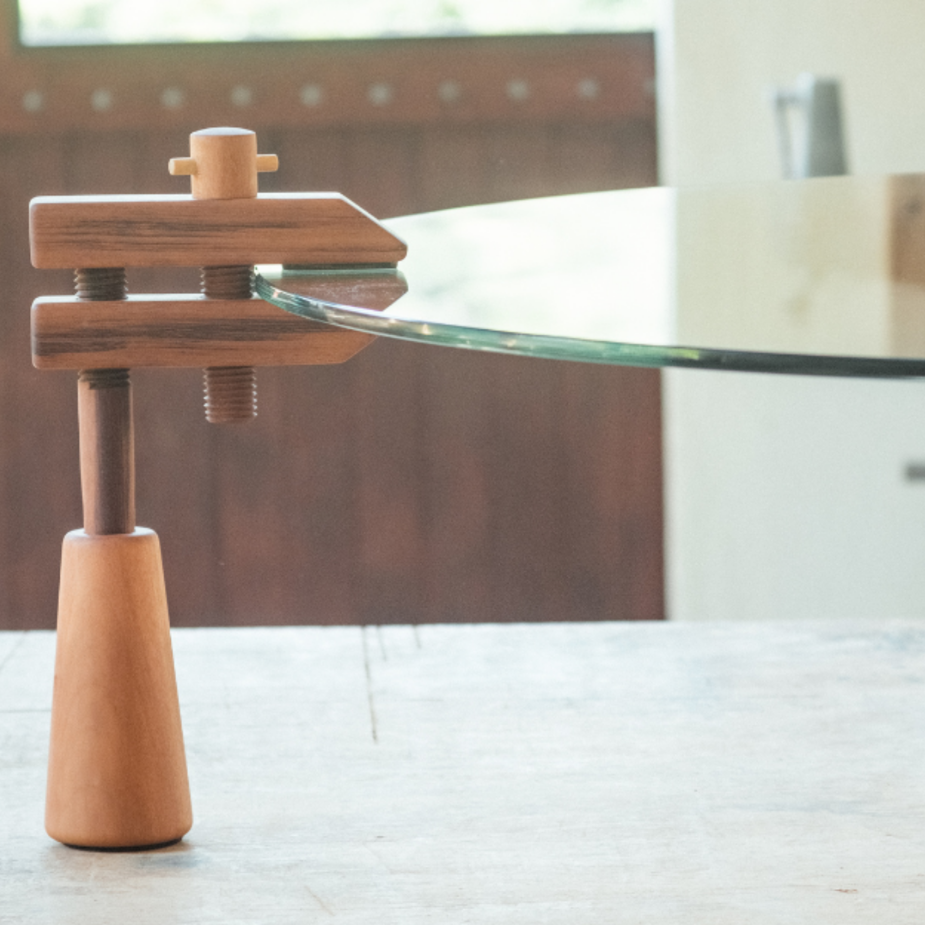 A mesa Grampo, tem como inspiração os utensílios e ferramentas usados em uma marcenaria. Atualmente, são comuns os grampos de ferro fundido, mas as marcenarias mais antigas usavam grampos fabricados na própria oficina, em madeira. Para a mesa Grampo, Fernando Mendes escolheu a peroba do campo, sendo que até os parafusos são trabalhados nessa madeira. Para mesas redondas são usados três grampos. Já se a mesa for quadrada ou retangular, quatro grampos. As garras do grampo são fixadas diretamente no tampo, dispensando o uso de ferramentas.