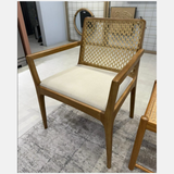 Acabamento: Madeira freijó | Encosto em palha trama Miele cor bronze e assento no tecido Senna Gengibre