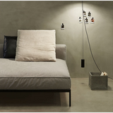 A chaise segue o mesmo conceito da peça: bloco independente sobre a estrutura metálica, criando um plano amplo, confortável e elegante para esticar as pernas, ler ou simplesmente não fazer nada.