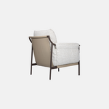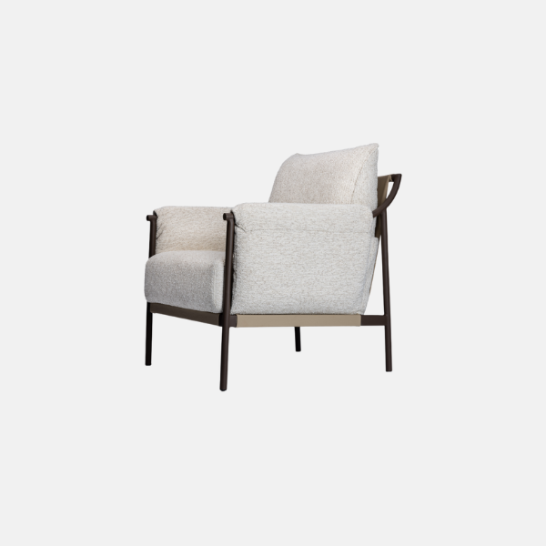 Poltrona Lina possui opção de detalhe em outro tecido, que valoriza o visual da peça, trazendo elegância.